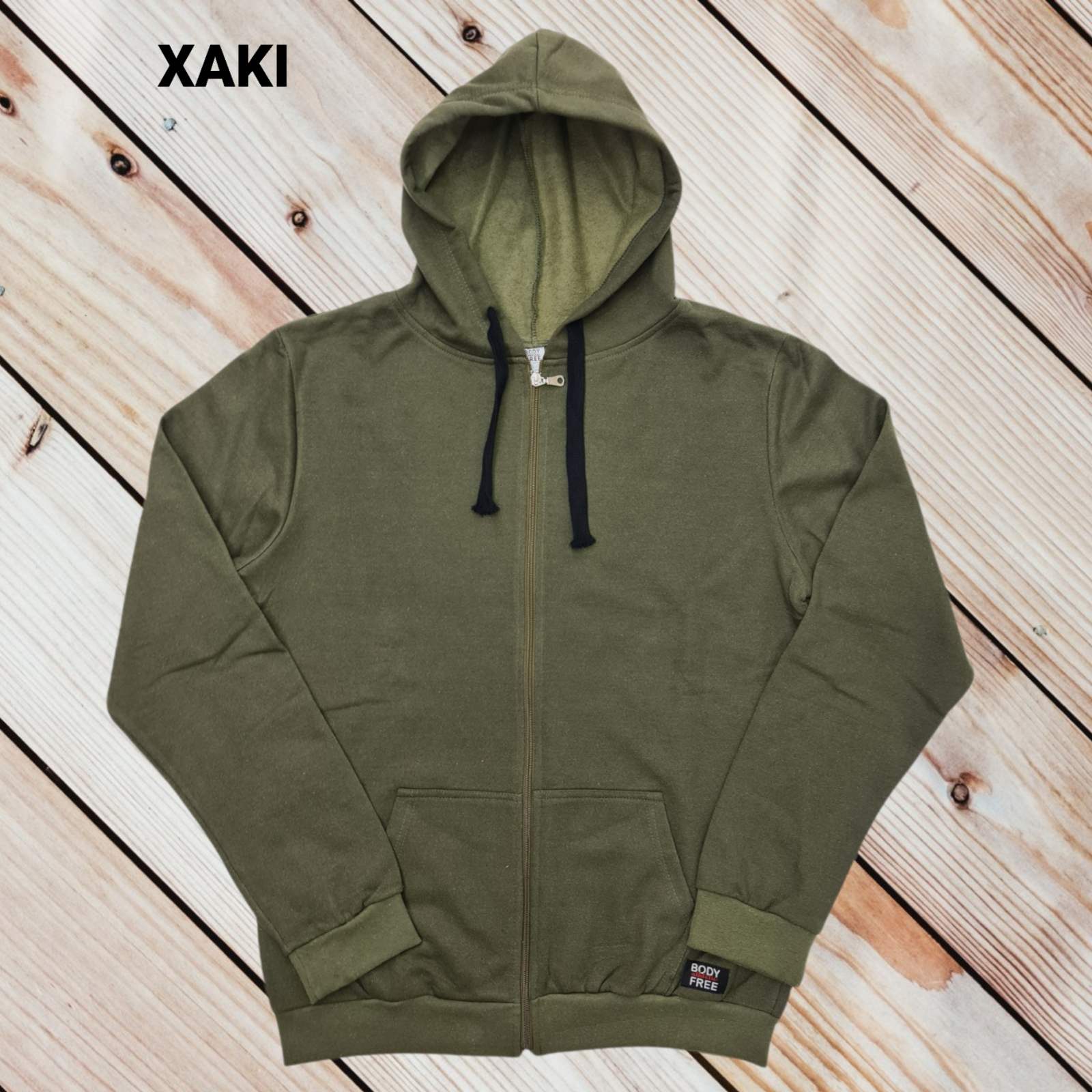 Ζακέτα με κουκούλα με χνούδι εσωτερικά, από 100% βαμβάκι. Ανεξίτηλα χρώματα, ύφασμα υψηλής ποιότητας που δεν μπαίνει στο πλύσιμο. Με υφαντή ραφτή στάμπα κάτω αριστερά. Κορδόνι μαύρο. Διαθέτει δύο τσέπες στα πλαϊνά.