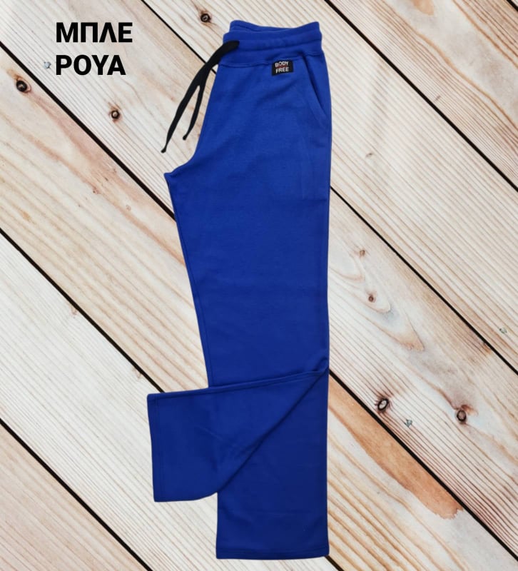 Παντελόνι φόρμα από 100% βαμβάκι. Ανεξίτηλα χρώματα, ύφασμα υψηλής ποιότητας που δεν μπαίνει στο πλύσιμο. 5εκ. λάστιχο ραφτό. Με κορδόνι 2εκ.