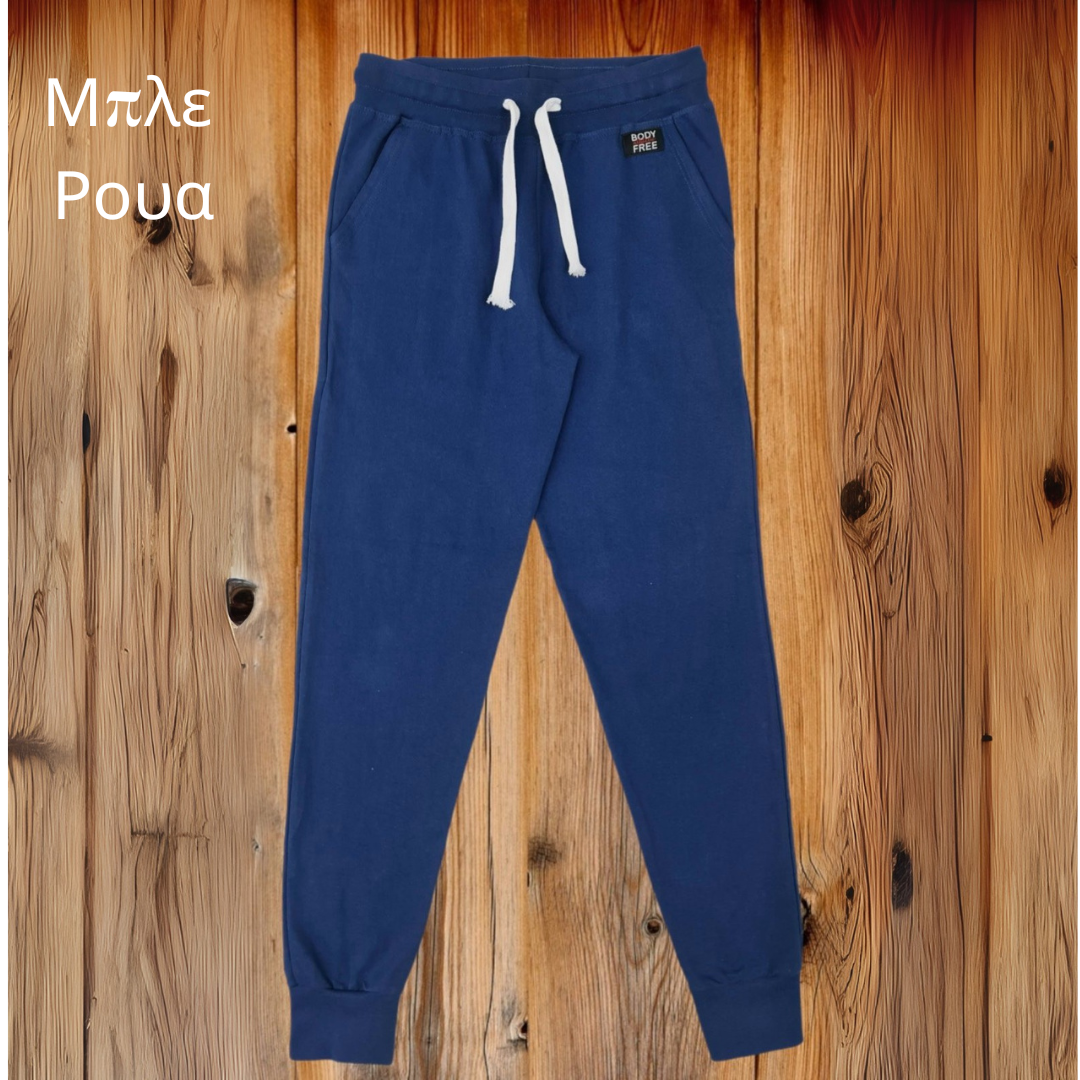Παντελόνι φόρμα με λάστιχο στο τελείωμα, από 100% βαμβάκι. Ανεξίτηλα χρώματα, ύφασμα υψηλής ποιότητας που δεν μπαίνει στο πλύσιμο. 5εκ. λάστιχο ραφτό. Με κορδόνι 2εκ. Καλοκαιρινό ύφασμα χωρίς χνούδι εσωτερικά.