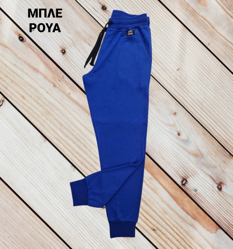 Παντελόνι φόρμα με λάστιχο στο τελειώμα με χνούδι εσωτερικά, από 100% βαμβάκι. Ανεξίτηλα χρώματα, ύφασμα υψηλής ποιότητας που δεν μπαίνει στο πλύσιμο. 5εκ. λάστιχο ραφτό. Κορδόνι μαύρο. Με υφαντή ραφτή στάμπα. Διαθέτει 2 τσέπες μπροστά.